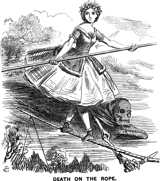 Here's a precursor to a stretch portrait at Disneyland's Haunted Mansion: an illustration from an 1863 issue of Punch magazine. The caption reads: "Death on the Rope."