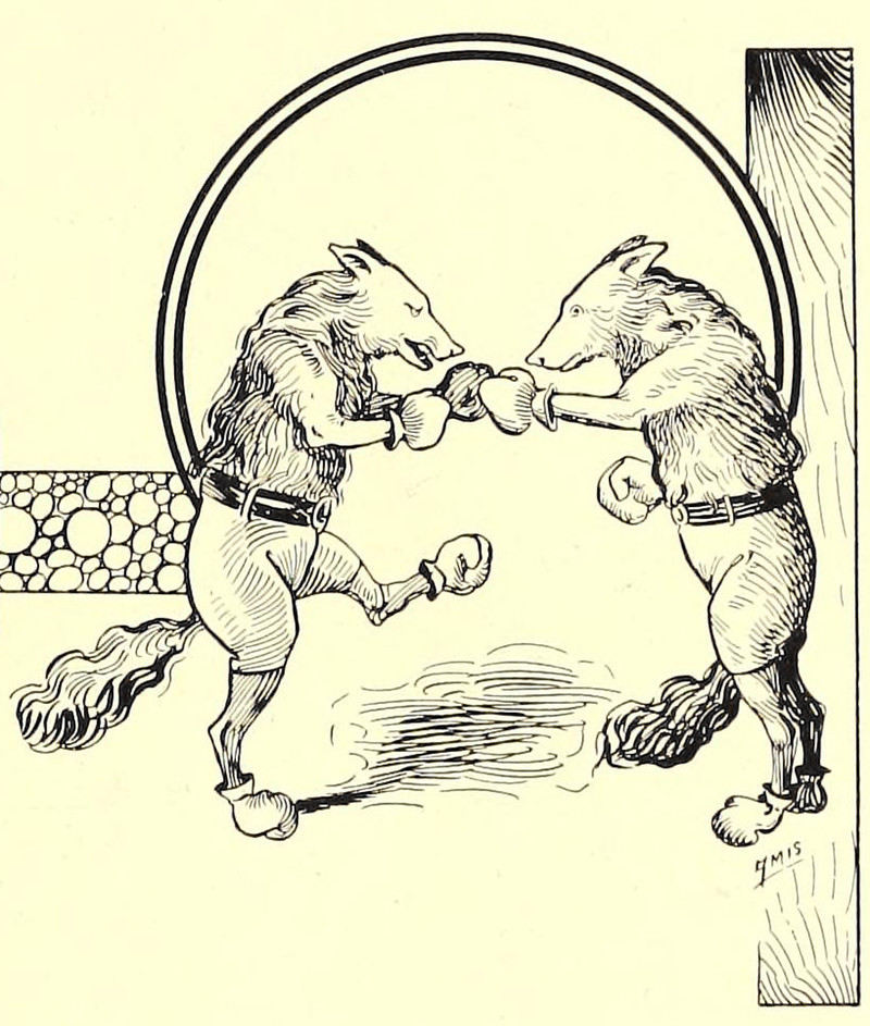 #vintage illustration #anthropomorphism #boxing #coyote #animal fight
