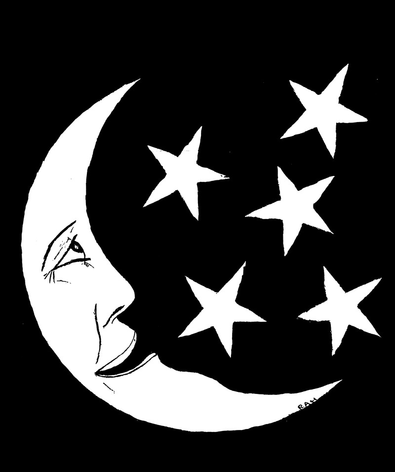 #vintage illustration #moon #man in the moon #vintage yearbook #yearbook #stars #faces in things