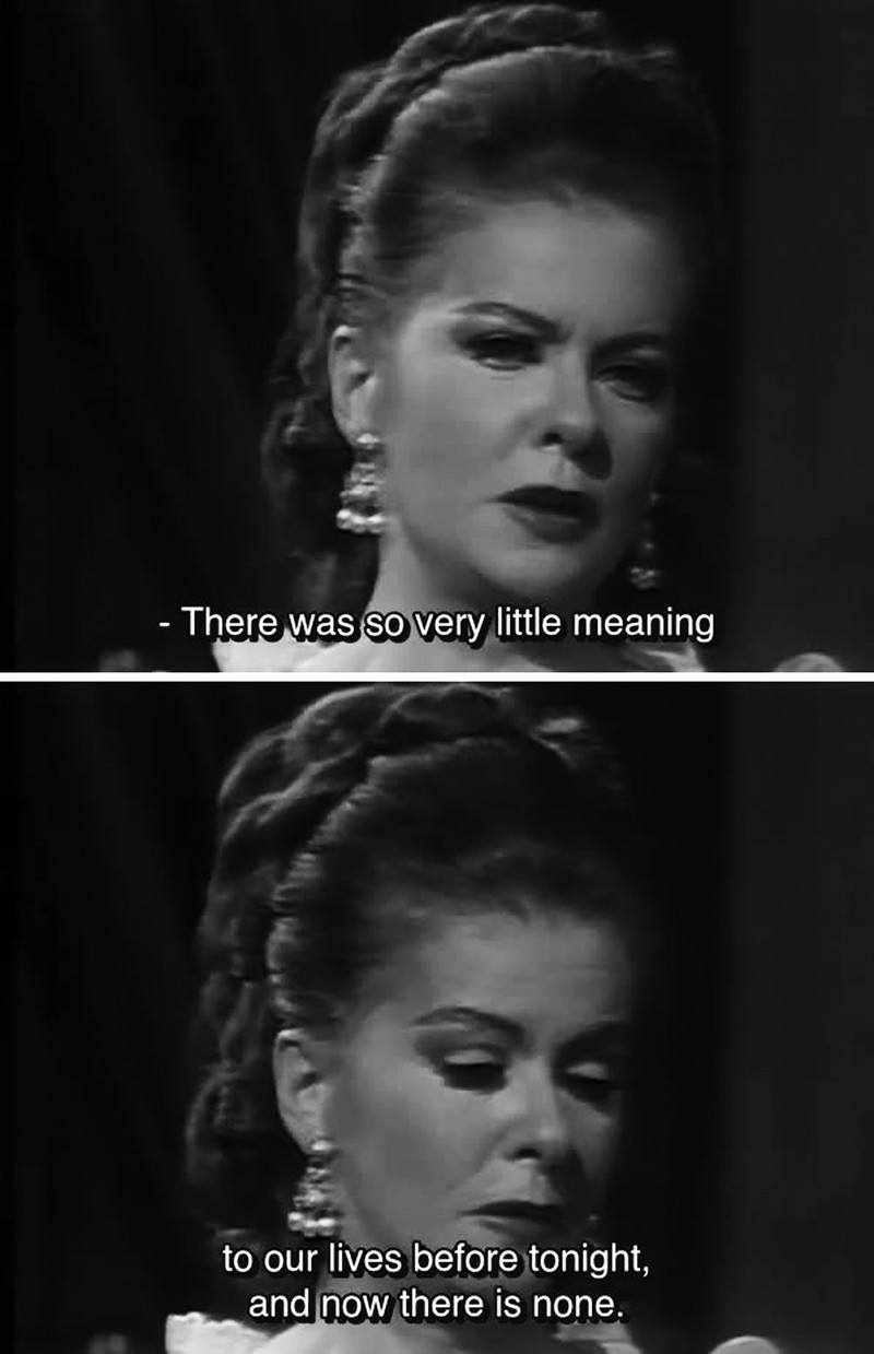 "There was so very little meaning to our lives before tonight, and now there is none."  From Dark Shadows episode 458.