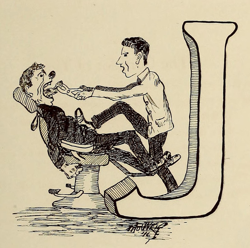 #vintage illustration #ornate capital #vintage yearbook #yearbook #dentist #letter j