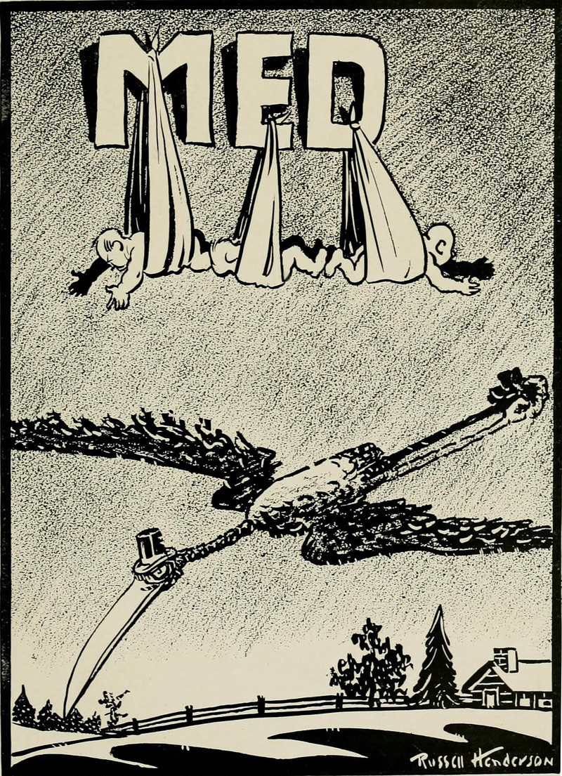 Funny to see doctors trying to convince folks that they're needed for birthing, hoping we'll forget the existence of midwives. From the University of North Carolina at Chapel Hill's 1917 yearbook.