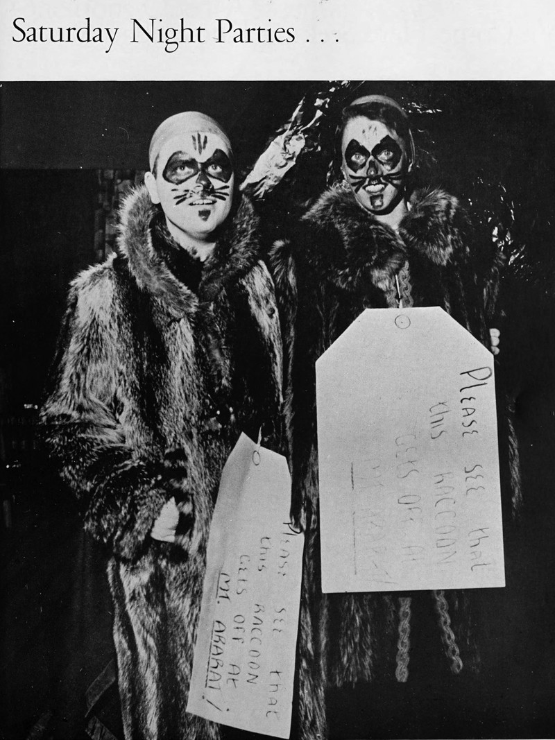 "Please see that this raccoon gets off at Mt. Ararat!"  From Northwestern University's 1959 yearbook.
