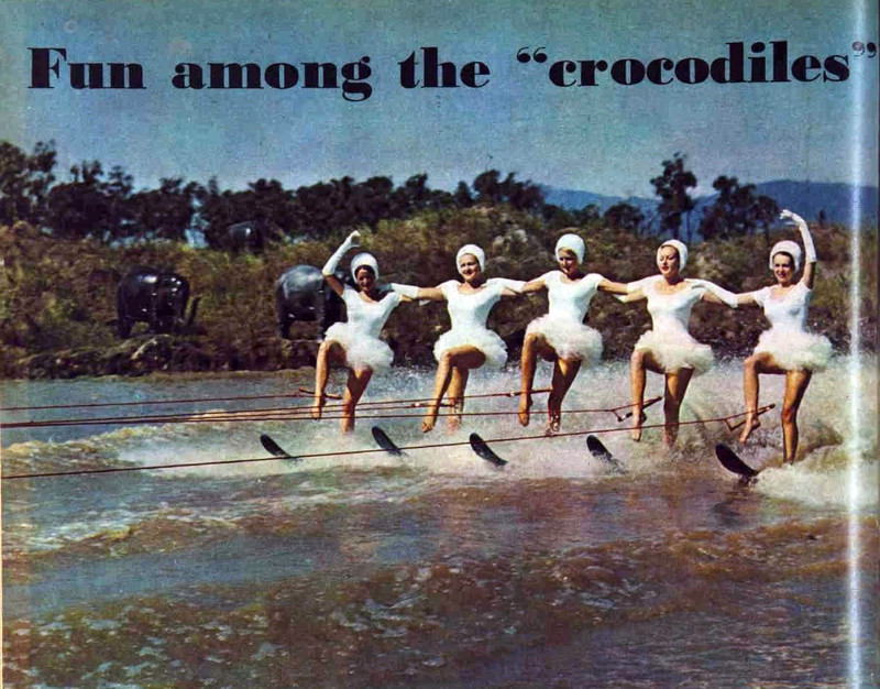 "Fun among the 'crocodiles.'"  From The Australian Women's Weekly, 1966.