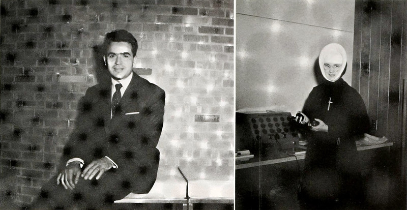 Today, folks use apps to get effects like this in photos, but in the 1960s, it happened naturally.  From the College of Great Falls' 1964 yearbook.