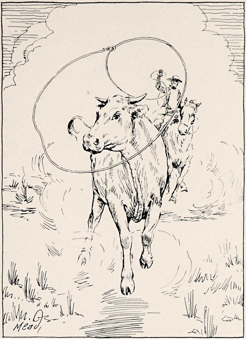 #vintage illustration #vintage yearbook #yearbook #bull #cowboy #lasso
