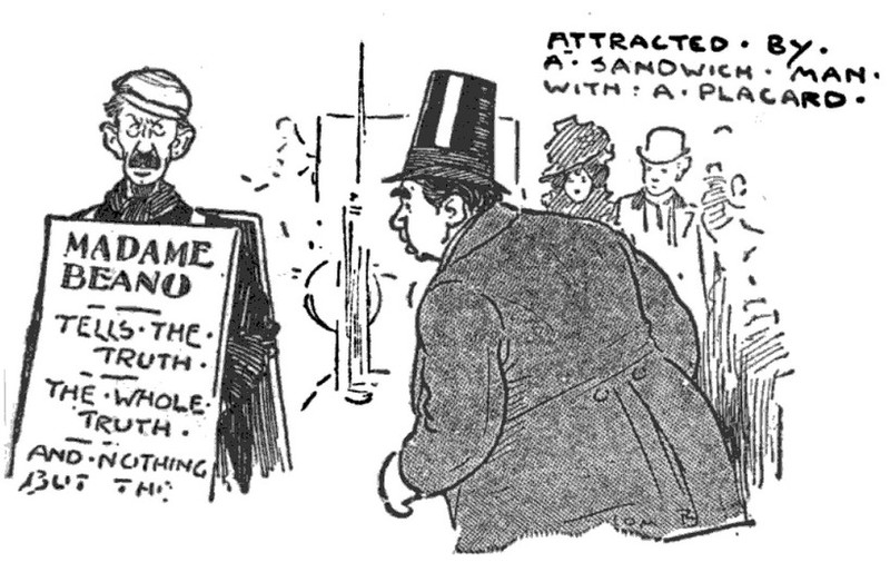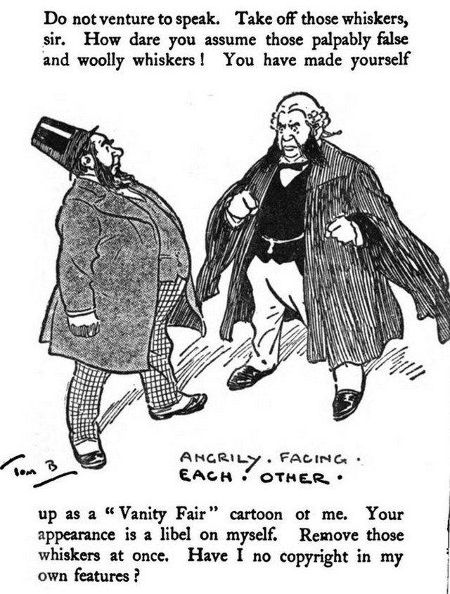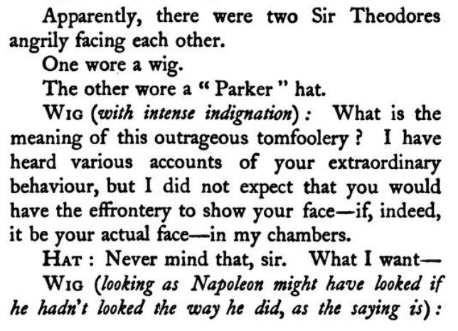 [Bonus 3a/3b: In-joke references to 19th-century tropes, to wit, a "shocking hat" and a legal case called Box v. Cox]