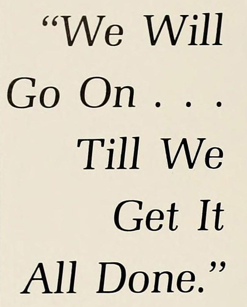 "We will go on ... till we get it all done."  From Ohio University's 1973 yearbook.
