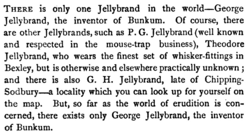 I have tried--and obviously with success--to induce you to believe that "Bunkum" is a society novel (with a strong whisker interest). [It's actually a collection of short pieces.]