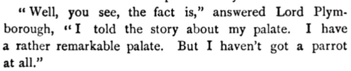 [Additional snippet from this story attached--and note how it leads us straight back to that other Richardson, Sir Ralph, and the parrot/palette business! (In the titular parrot story, it was the parrot who was credited with having the infallible palate for wine vintages.)]