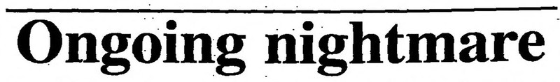 "Ongoing nightmare."  From The Jerusalem Post, 1996.