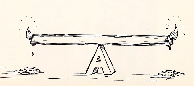 #vintage illustration #vintage yearbook #yearbook #candle #seesaw #1940s #burning the candle at both ends #illustration