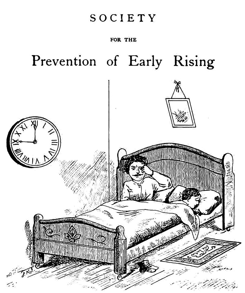 The Society for the Prevention of Early Rising.  From (Stevens Institute of Technology's) Eccentric, 1880.