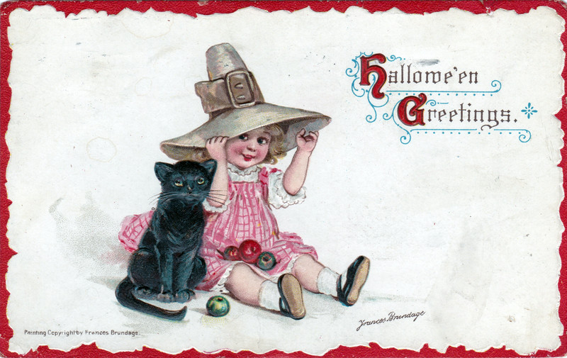 #vintage illustration #black cat #hallowe'en #vintage postcard