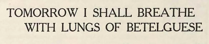 "Tomorrow I shall breathe with lungs of Betelguese."  From Reality Magazine, 1938.