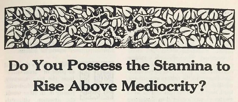 "Do you possess the stamina to rise above mediocrity?"  From Reality Magazine, 1939.