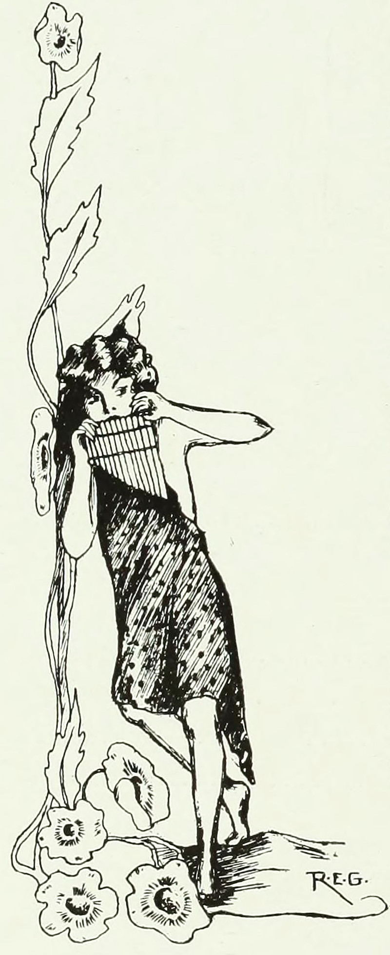 #vintage illustration #fairy #vintage yearbook #yearbook #pan pipes #musician #illustration