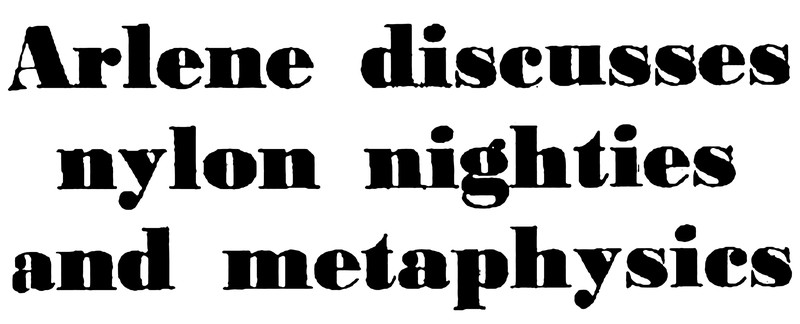 "Arlene discusses nylon nighties and metaphysics."  From Australian Women's Weekly, 1957.