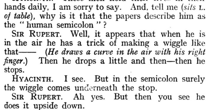 ***"His poor, dead mother always sent her luggage in advance. He takes after her."***"This [painting] is called 'Thoughts on passing a doubtful cheque for two pounds.'"***