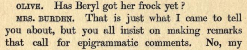 [See first attachment, "epigrammatic": One of the occupational hazards of being a character in a drawing-room comedy.]