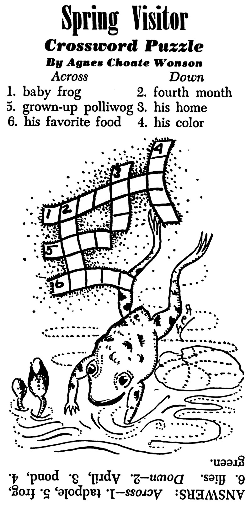 #vintage illustration #frog #spring #crossword puzzle