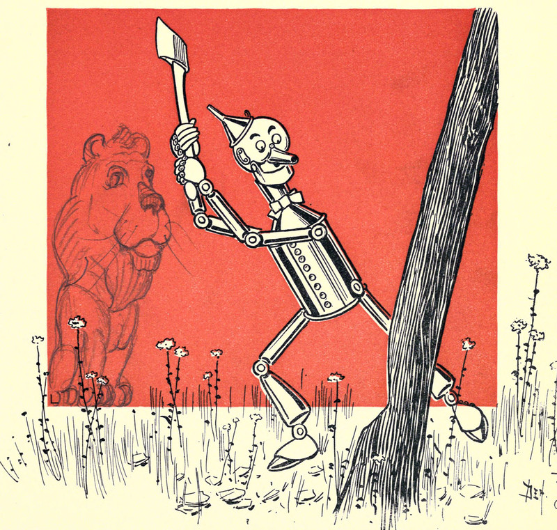 A reader pencilled in the Cowardly Lion.  From The Wonderful Wizard of Oz by L. Frank Baum and illustrated by W. W. Denslow, 1899.