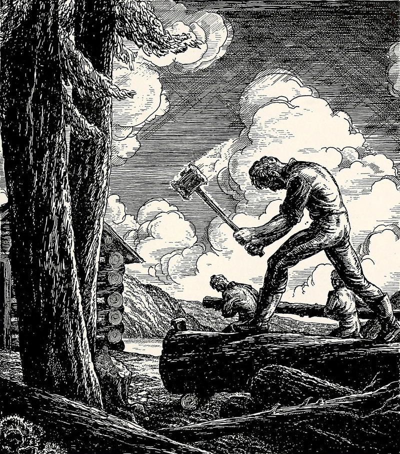 #vintage illustration #woodcutter #vintage yearbook #yearbook #1930s #lumberjack #ax