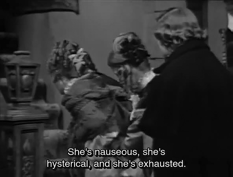 "She's nauseous, she's hysterical, and she's exhausted.."  From Dark Shadows episode 1117.