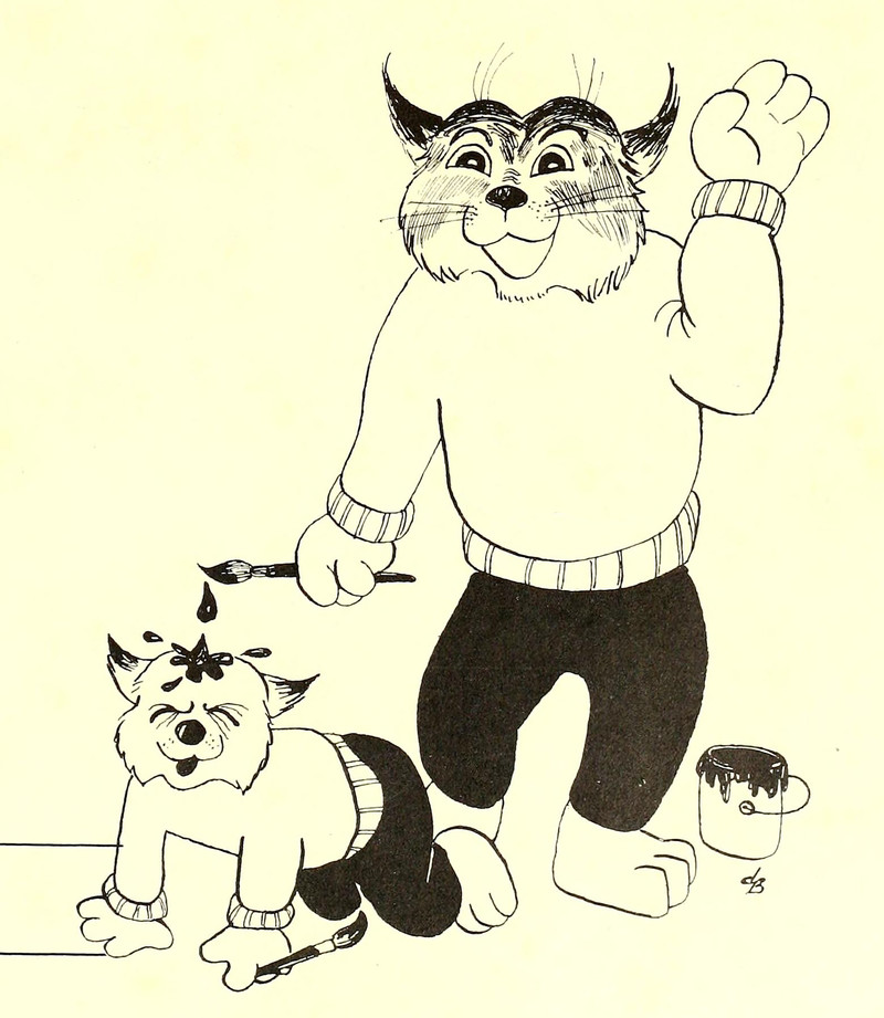 #vintage illustration #anthropomorphism #cat #vintage yearbook #paint