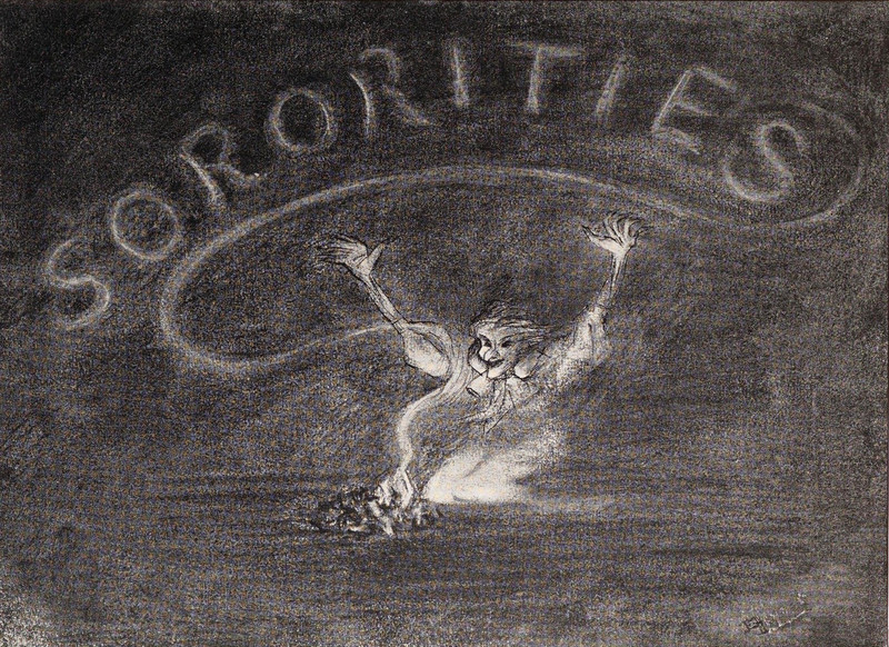 #vintage illustration #vintage yearbook #yearbook #smoke #illustration #sorority #1910s