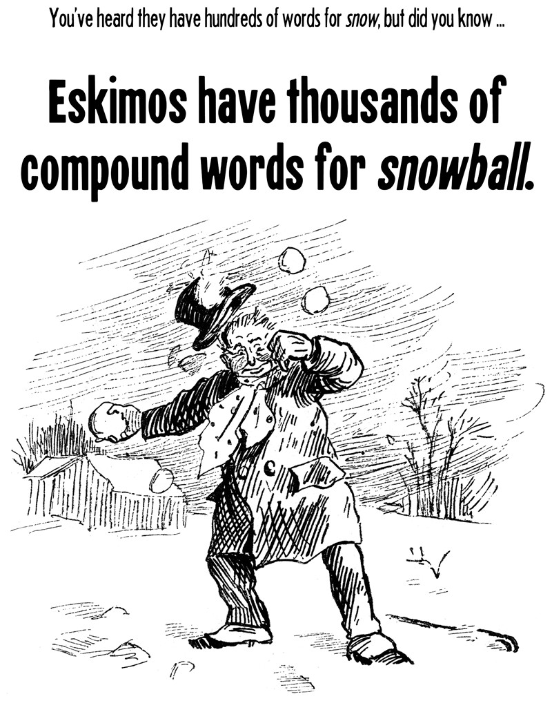 From Prof. Oddfellow's sketchbook.  You've heard that they have hundreds of words for snow, but did you know ... Eskimos have thousands of compound words for snowball.