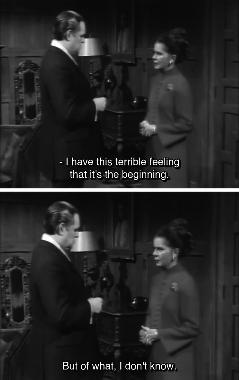 "I have this terrible feeling that it's the beginning.  But of what, I don't know."  From Dark Shadows episode 647.