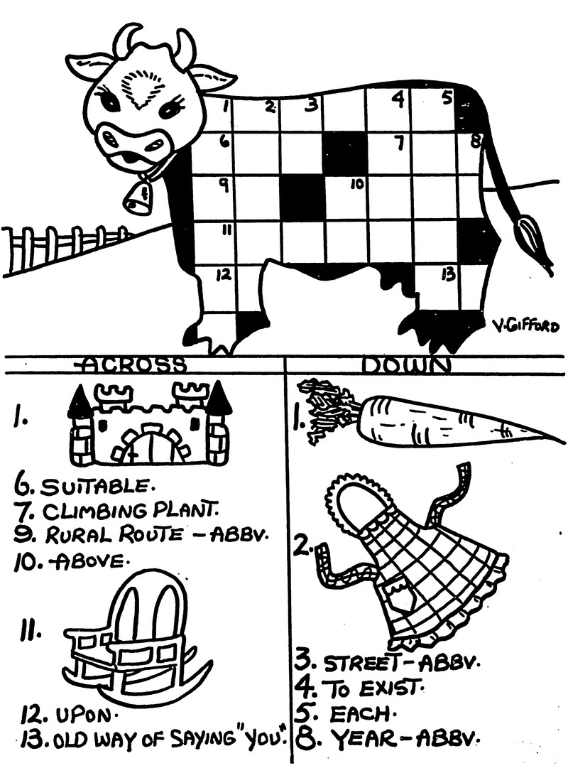 #vintage illustration #cow #crossword puzzle
