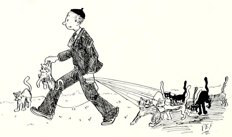 #vintage illustration #cat #vintage yearbook #pet walker #walking the cat
