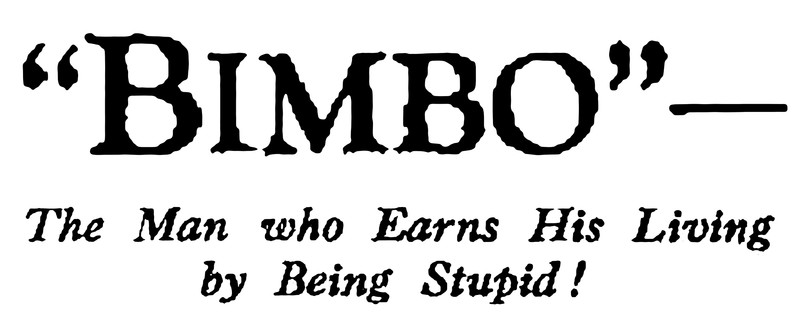 "Bimbo, the man who earns his living by being stupid!" From The Australian Women's Weekly, 1935. See our video about the importance of daring to be stupid.