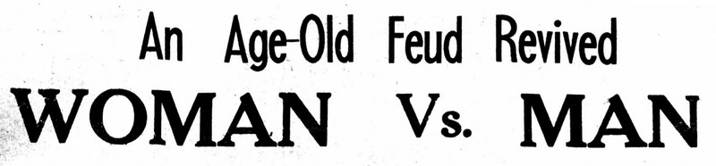 "An age-old feud revived: woman vs. man."  From the Bombay Sunday Chronicle, 1942.