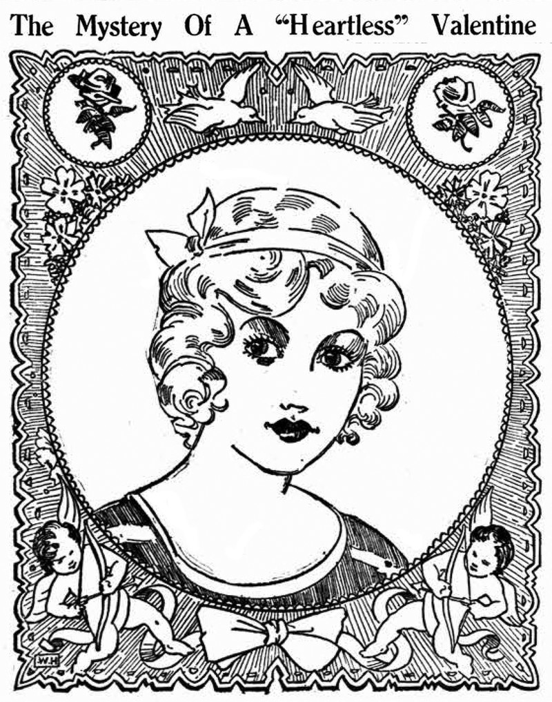 This heartless valentine can be folded in such a way to reveal a heart.  The solution was never printed.  From the Bombay Sunday Chronicle, 1936.