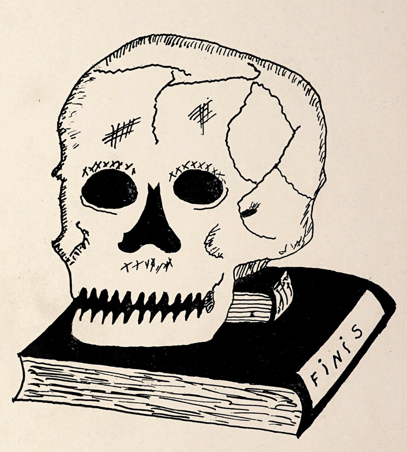 #vintage illustration #skull #finis #vintage yearbook #yearbook #the end #illustration