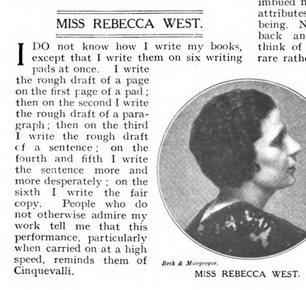2. Rebecca West's method has something of the Achilles and the tortoise about it. (I had to look up Cinquevalli, who, in case you also didn't know, was a juggler.)