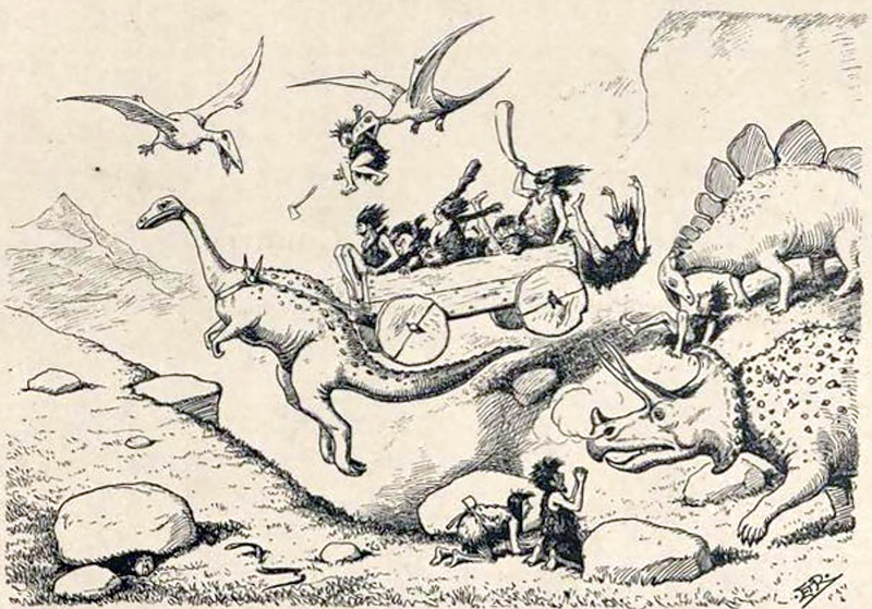 "A day in the country."  From Mr. Punch’s Prehistoric Peeps by E. T. Reed, 1902.