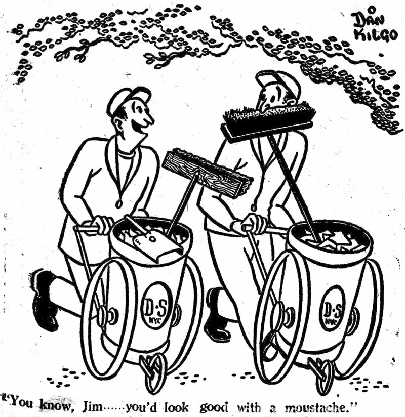 "You know, Jim ... you'd look good with a moustache."  From the Bombay Sunday Chronicle, 1947.