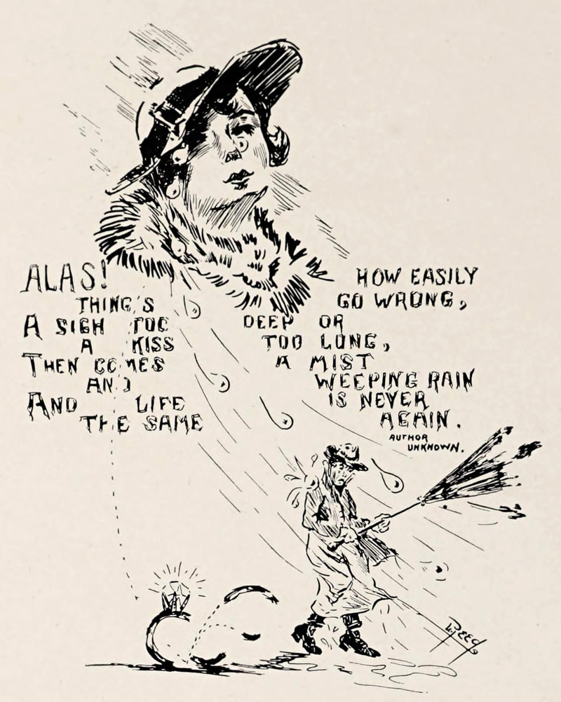 "Alas! How easily things go wrong, a sigh too deep or a kiss too long, then comes a mist and weeping rain, and life is never the same again." From Nebraska Wesleyan University's 1917 yearbook.