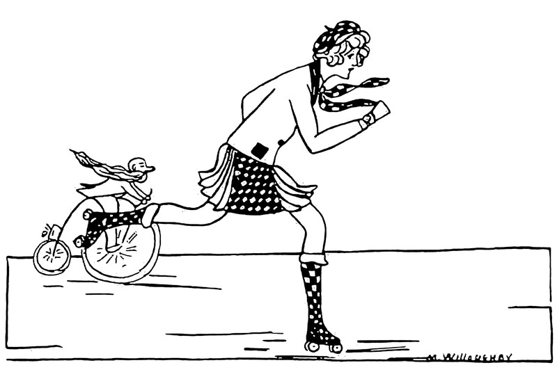 #vintage illustration #vintage yearbook #yearbook #penny-farthing #race #rollerskates #roller skates #pennyfarthing