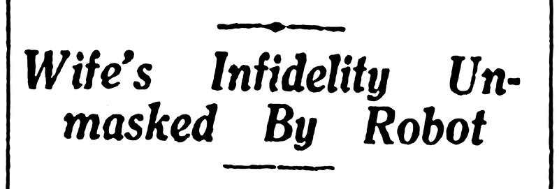 "Wife's infidelity unmasked by robot."  From the Bombay Sunday Chronicle, 1939.