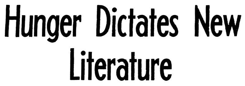 "Hunger dictates new literature."  From the Bombay Sunday Chronicle, 1945.