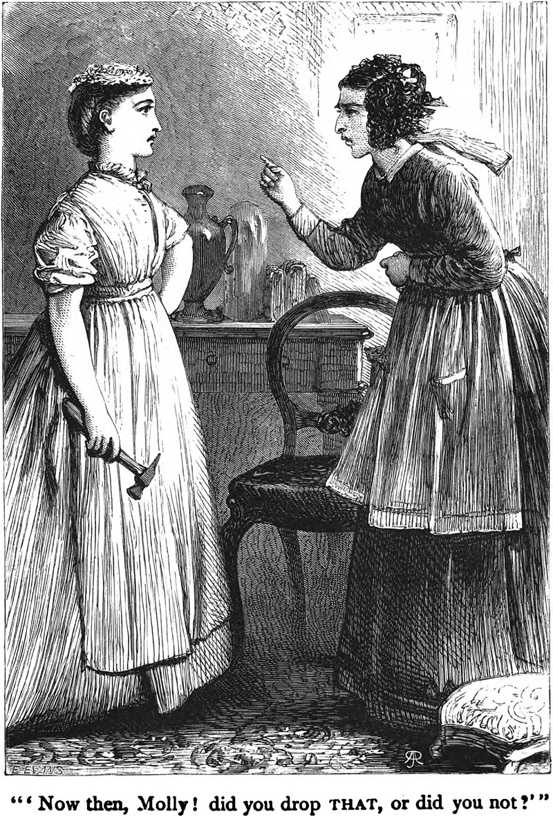 The caption reads: "Now then, Molly! did you drop THAT, or did you not?" The illustration appears in The Argosy, April 1, 1870.