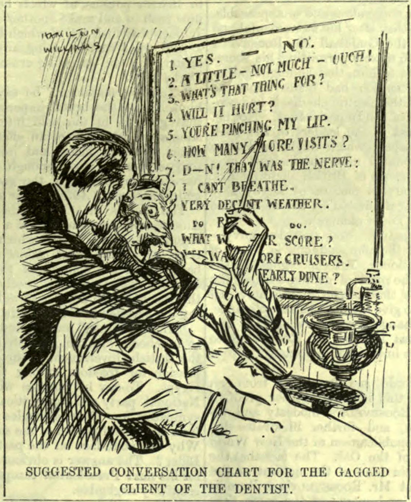 A conversation chart for dental clients.  From Punch, 1910.