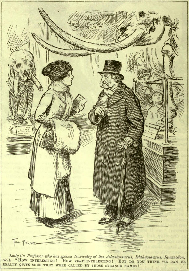 "But do you think we can be really quite sure they were called by those strange names?"  From Punch, 1910.