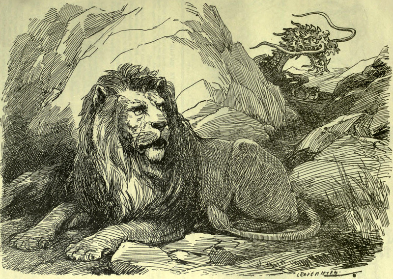 #vintage illustration #dragon #lion