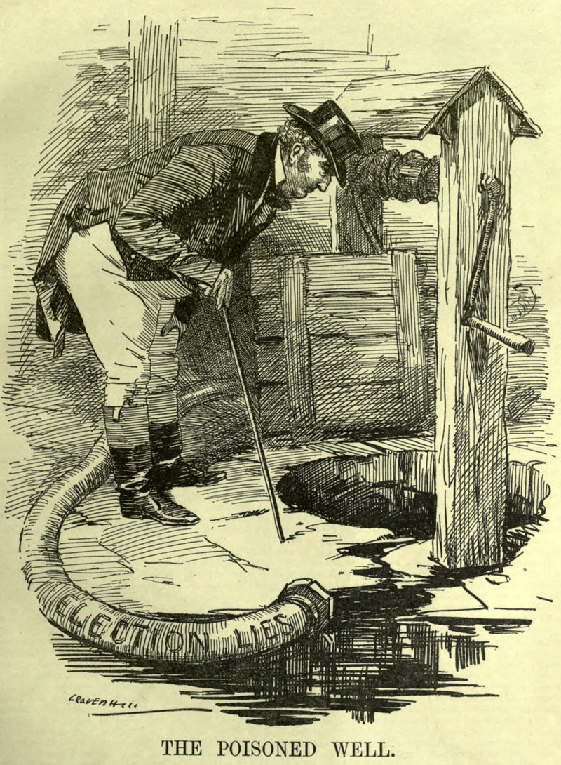 #vintage illustration #political cartoon #lies #poison #well #illustration #pollution #election #1910s